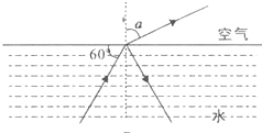 如图所示,是一束从水中斜射入空气中的光线,请在图中画出它的反射光线和大致的折射光线方向;并标出折射角α.