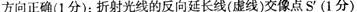 在碗底放一枚硬币S,向碗里倒水后,会观察到“硬币”上升,如图所示。请将眼睛看到硬币像S′的光路图补充完整.
