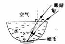 在碗底放一枚硬币S,向碗里倒水后,会观察到“硬币”上升,如图所示.请将眼睛看到硬币像S′的光路图补充完整.