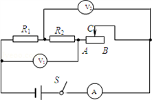 (1)当滑动变阻器的滑片P在中点C时,等效电路图如下图所示:![]()