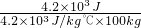 水的内能为Q=W×10%=4.2×104J×10%=4.2×103J;