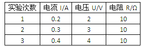 | 试验次数 | 电流I/A | 电压U/V | 电阻R/Ω |