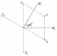 (江苏第11界初中物理竞赛题)如图所示,平面镜M1和M2的夹角为60°,物点S经这两块平面镜所成的清晰像共有