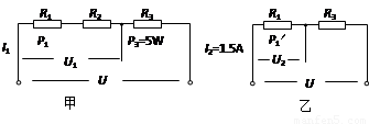 ÈçͼËùʾµÄµç·ÖУ¬µçÔ´Á½¶ËµçѹU±£³Ö²»±ä¡£µ±Ö»±ÕºÏ¿ª¹ØS1ʱ£¬µçÁ÷±íµÄʾÊýΪI1£¬µçѹ±íµÄʾÊýΪU1£¬µç×èR3ÏûºÄµÄµç¹¦ÂÊP3Ϊ5W£¬µç×èR1ÏûºÄµÄµç¹¦ÂÊΪP1¡£µ±¿ª¹ØS1¡¢S2¶¼±ÕºÏʱ£¬µçÁ÷±íµÄʾÊýI2Ϊ1.5A£¬µçѹ±íµÄʾÊýΪU2£¬µç×èR1ÏûºÄµÄµç¹¦ÂÊΪP1¡ä¡£ÒÑÖªP1 £ºP1¡ä=4£º9£¬U1£ºU2=8£º3¡£Çó£º