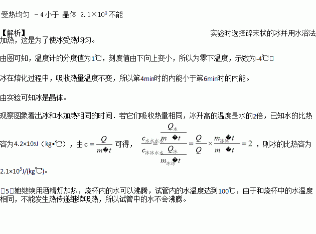 (1)欣欣实验时选择碎末状的冰并用水浴法加热,这是为了使冰______。