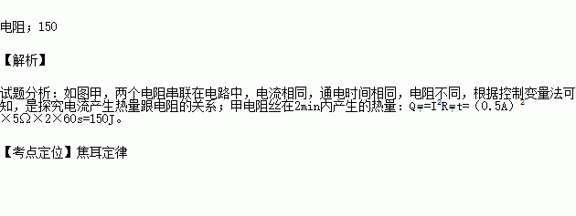 如图所示,是研究“在相同时间内电流通过导体产生的热量与 的关系”的实验装置和.若电阻丝R甲=5Ω,R乙=10Ω,通过电路中的电流为0.5A,则甲电阻丝在2min内产生的热量是 J.