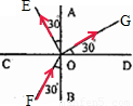解答:解:根据光的反射定律,入射光线与法线的夹角为入射角,反射光线与法线的夹角为反射角,并且反射角等于入射角;由图可知,∠AOE=∠BOF=30°,故CD是法线,AB是界面,所以OF是入射光线,OE是反射光线,OG为折射光线,如图所示: