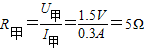解答:解:由图象可知,对于甲电阻当U甲=1.5V时,I甲=0.3A,所以