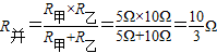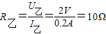 同理:对于乙电阻当U乙=2V时,I乙=0.2A,所以