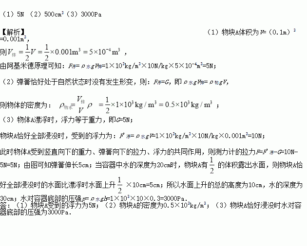 (3)往容器缓慢加水(水未溢出)至物块A恰好浸没时水对容器底部的压强p(整个过程中弹簧受到的拉力跟弹簧的伸长量关系如图乙所示;液体压强公式p=ρgh)。