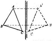 如图,有一三角形物体ABC,请作出其在平面镜中的像.