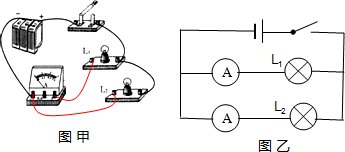 解答:解:(1)灯泡L1与L2并联,用电流表测L1中的电流,电流表串联在L1支路中,实物电路图如图甲所示;