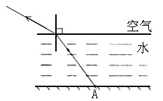 (2012?巴中)如图所示,湖底A点发出一束光斜射向水面.请画出该束光进入空气后的大致光路图.
