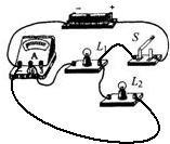 解答:解:电流经开关后:一支电流流经灯泡L1和电流表后回到电压表的负极,另一支电流流经L2后回到电源的负极,如图所示.