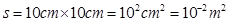 试题分析:边长为10cm的正方形的底面积为
