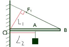 (5分) (1)如图所示, 轻杆OB以O点为轴静止, 请画出动力臂L1和阻力臂L2![]()