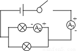 【答案】分析:由题意知,两灯泡并联,A2测L2中电流,则A2与L2在同一条支路上,A2在干路上;