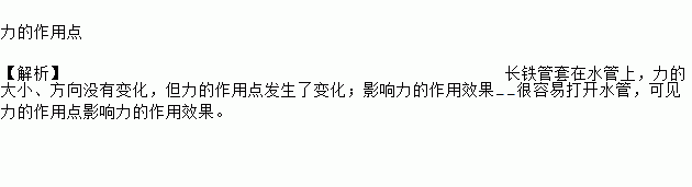 如图甲所示,长期不用的水龙头会因生锈而很难打开,维修人员常会用一长铁管套在水管上,如图乙所示,同样大小的力在管端A点处用力,则会很容易打开水管。这是由于______不同而引起力的作用效果不同的缘故。