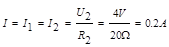 由图象可知R2 =20Ω R2两的电压为U2 1分