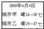 右表列出的是2009年6月4日沿海城市上海和内地城市西安的气温情况,请根据两座城市气温变化情况判断城市名称,甲是