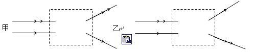请你在下图甲、乙的虚线框内分别画出一个适当的光学器件,使它能够满足图中改变光路的要求。