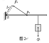 (2分)如图14所示,轻质杠杆可绕O转动,杠杆上吊一重物G,在力F作用下杠杆静止在水平位置,l为F的力臂,请在图中作出力F的示意图及重物G所受重力的示意图。图14
