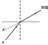 解答:解:(1)水中的物体反射的光线斜射到水面,折射光线远离法线偏折,