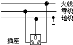 解:三孔插座接法:上孔接地线;左孔接零线;右孔接火线.