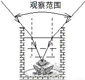 光井底有水时,光由空气进入水中发生折射,折射光线靠近法线,如图所示,可以增大观测范围.