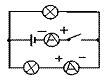如图所示,在电路的“○” 处填入两个灯泡,两个电流表,并标出电流表的“+”“-”接线柱和电源的正负极。