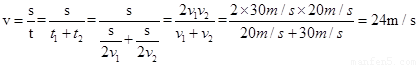 某物体沿直线运动,前一半路程的平均速度为30 m/s,后一半路程的平均速度为20 m/s,物体在全程中的平均速度是