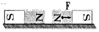 如图所示.是放在同一水平直线上的两条形磁铁。请作出右侧条形磁铁所受到的磁力示意图(2分)。