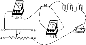 电压表选用0~15V量程,电流表选用0~0.6A量程,滑动变阻器接线柱一上一下,连接实物图如下: