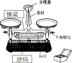 解:据图能看出,上方框指的是天平的横梁,下方框指的是天平的游码;