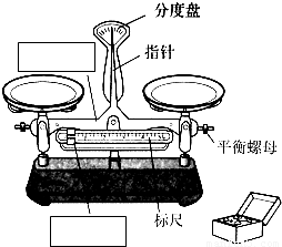 图是托盘天平示意图,请在空白方框处注明所指构件的名称.
