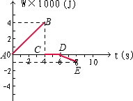 可见,起重机对物品做的功与t成正比,当t=1s(第7秒),W3=500J,t=2s(第8s),W3=1000J,只是物体运动的方向与拉力方向相反,做负功,利用描点法画出图象DE.
