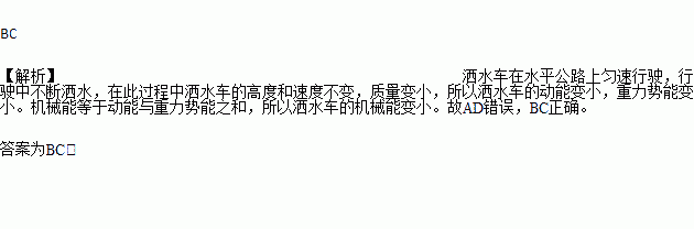 洒水车在水平公路上匀速行驶,行驶中不断洒水,在此过程中洒水车( )