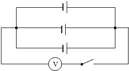 为了研究并联电池组的电压规律,需要测量三个电池并联之后的电压。请按照要求在图中用笔画线代替导线连接实物电路,并在图的方框内画出对应的电路图。
