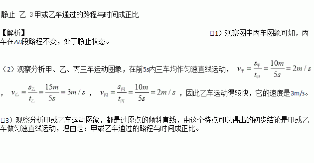 (2)观察分析甲、乙、丙三车运动图象,在前5s内________车运.动得较快,它的速度是________