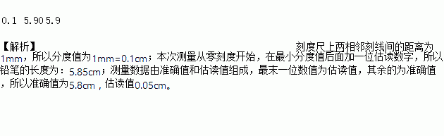 如图所示,刻度尺的分度值是____cm,铅笔的长度是____cm,其中准确值是____cm。