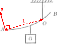 如图所示,硬质杠杆AOB上挂一重物G,O为支点,请你在杠杆AOB上作出使重物在图示位置静止时的最小力F及其力臂l.