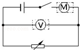 20、在图所示的电路中,尚有电压表、电动机没有接入,请在虚线框内填上适当的元件符号,使电路接通后电动机能工作.