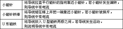 | 所用器材 | 主要实验步骤及判断导线中是否有电流的方法 | |