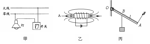 (3)如图丙所示,杠杆OA可以绕O点转动,使杠杆在图示位置平衡,画出最省力时的力臂和作用力的方向.![]()