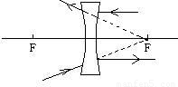 平行于主光轴的光线经凹透镜折射后的光线的反向延长线过焦点;射向焦点的光线经凹透镜折射后,将平行于主光轴.