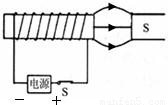 解答:解;因磁感线与N极指向S极,故电磁铁右端为N极,由安培定则知电流为从右侧流入,故磁场方向及电源正负极如图: