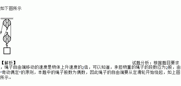 用如图所示的滑轮组提升重物,要求绳子自由端移动的速度是物体上升速度的2倍,请在图上画出绕线的方法.