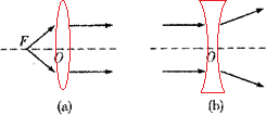 图中画出了光通过透镜前后的方向.在图(a)、(b)中填上适当类型的透镜.