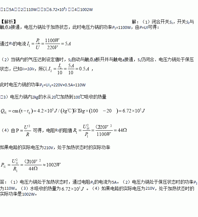 (1)电压力锅处于加热状态时,通过电阻R1的电流;