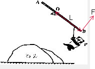 小华在动物园参观时,看到了如图所示的场景,为使小熊猫P不致与石头相撞而受伤害,请你在杠杆AB上作出使杠杆AB在如图位置静止时的最小力F的示意图和该力的力臂L,图中O为旋转点.